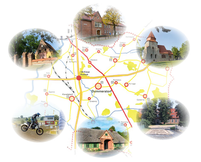 Dummerstorf mit Bandelstorf, Göldenitz, Pankelow, Schlage, Waldeck, Dishley und Klein Schwarfs.